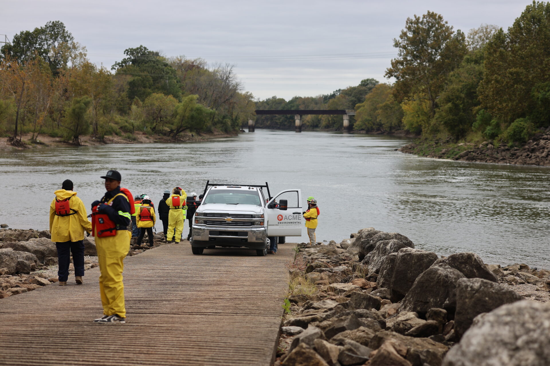 In the afternoon, training shifted to the field for a fast-water deployment exercise near a dam releasing copious amounts of water, where participants faced the challenge of strong, unpredictable currents. This exercise pushed teams to apply what they had learned throughout the week, focusing on strategy, safety, and precision under pressure. Responders practiced real-world coordination, ensuring every section of the boom was placed correctly and securely, reinforcing the importance of timing and teamwork in maintaining effective containment in moving water.