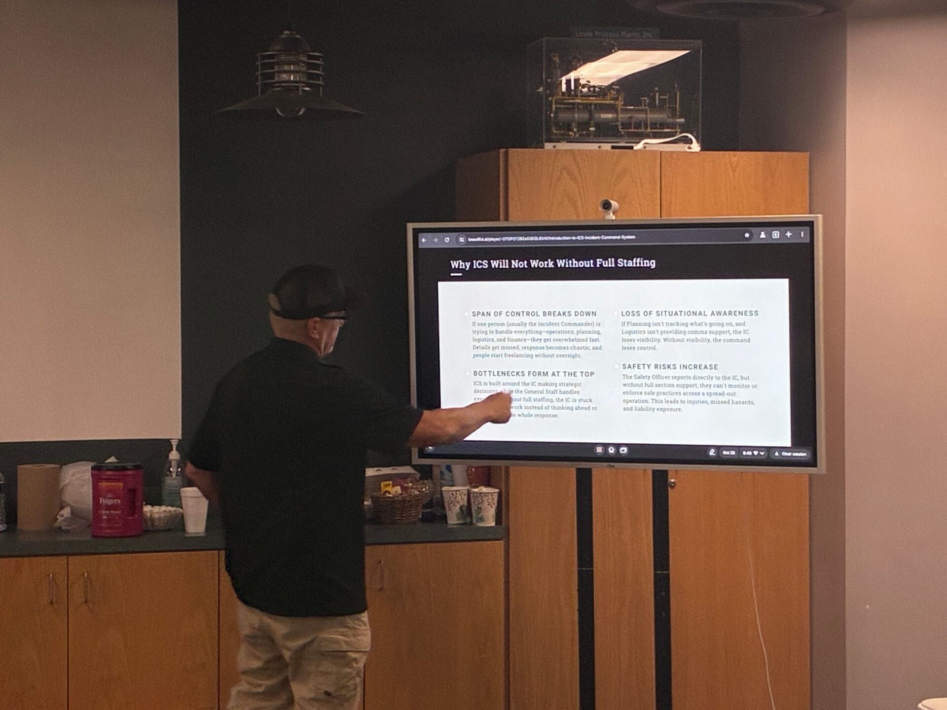 The session also covered the basics of the Incident Command System (ICS) and how it helps organize a successful response. Students learned how the different sections, Operations, Planning, and Logistics, work together to create a coordinated effort. By combining ICS principles with the use of digital tools, participants saw how technology and structure come together to improve response speed, accuracy, and teamwork. This knowledge is crucial for ensuring that all team members understand their responsibilities and can operate effectively in situations when time is of the essence.