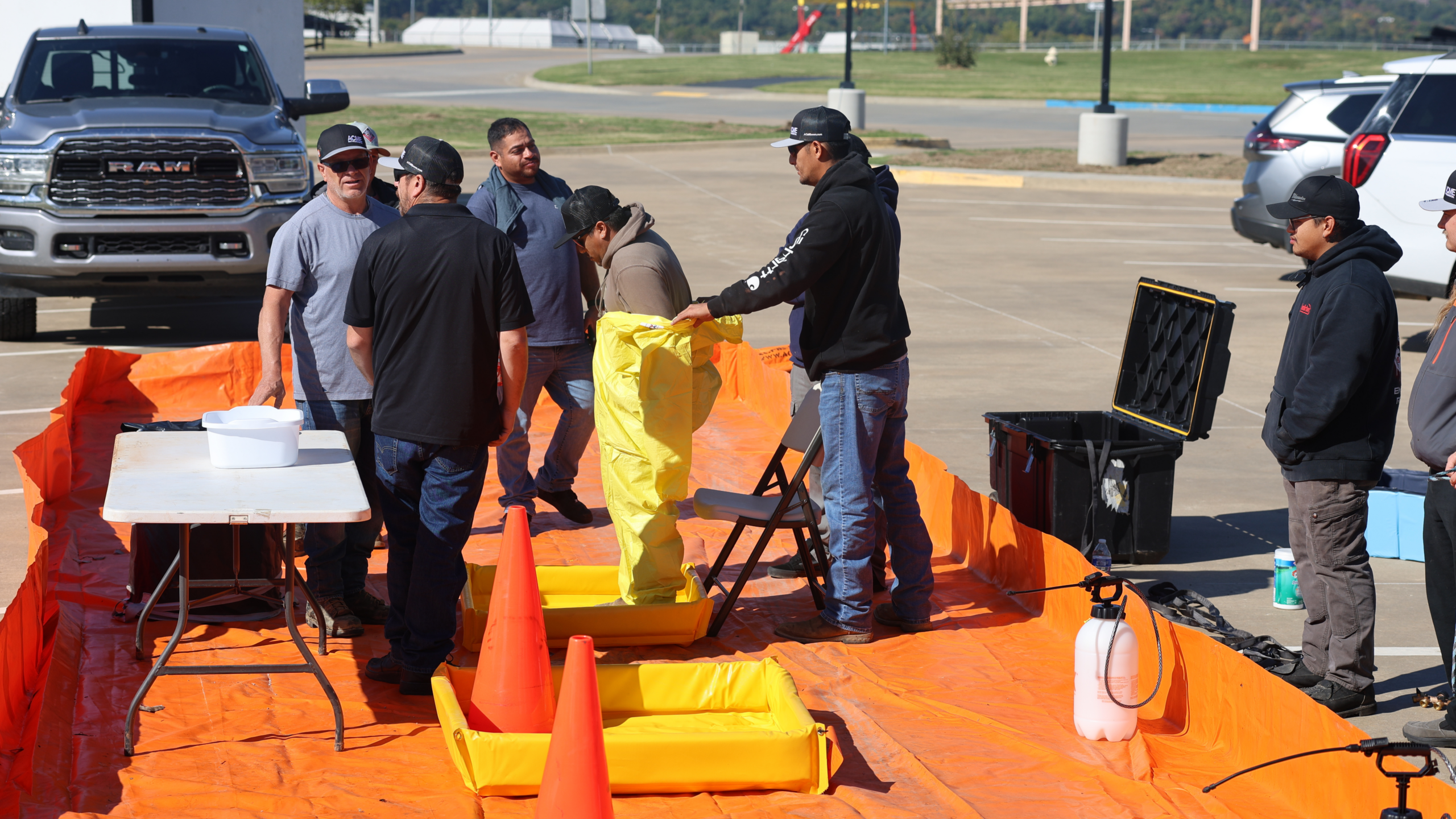 Decontamination set up during our Boom School using Aluminum Angle Berms, Foam Wall Berms, and Collapsible Berms