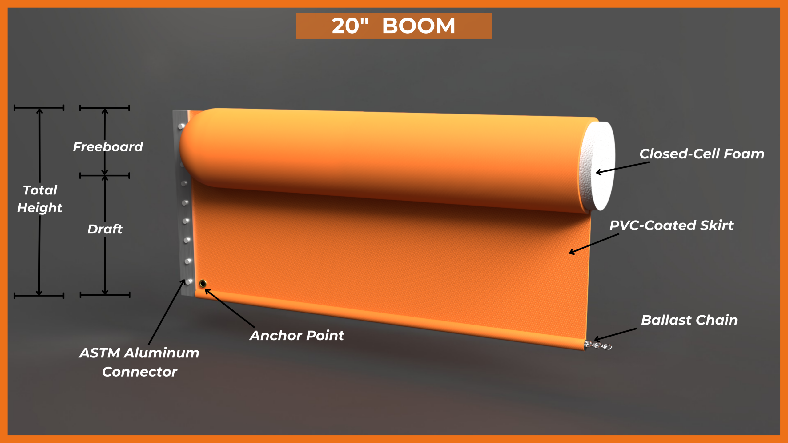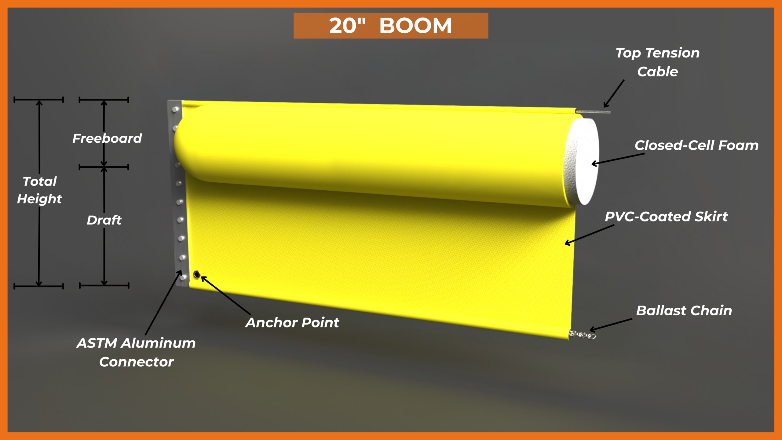 An oil containment boom is one of the first tools used in oil spill control and cleanup. They float at the surface where oil has been spilled, creating a flexible barrier that effectively contains an oil slick.