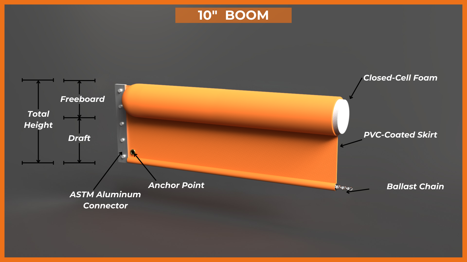 Creek & Swamp Containment Boom – 10″H, 4″ Freeboard x 6″ Draft