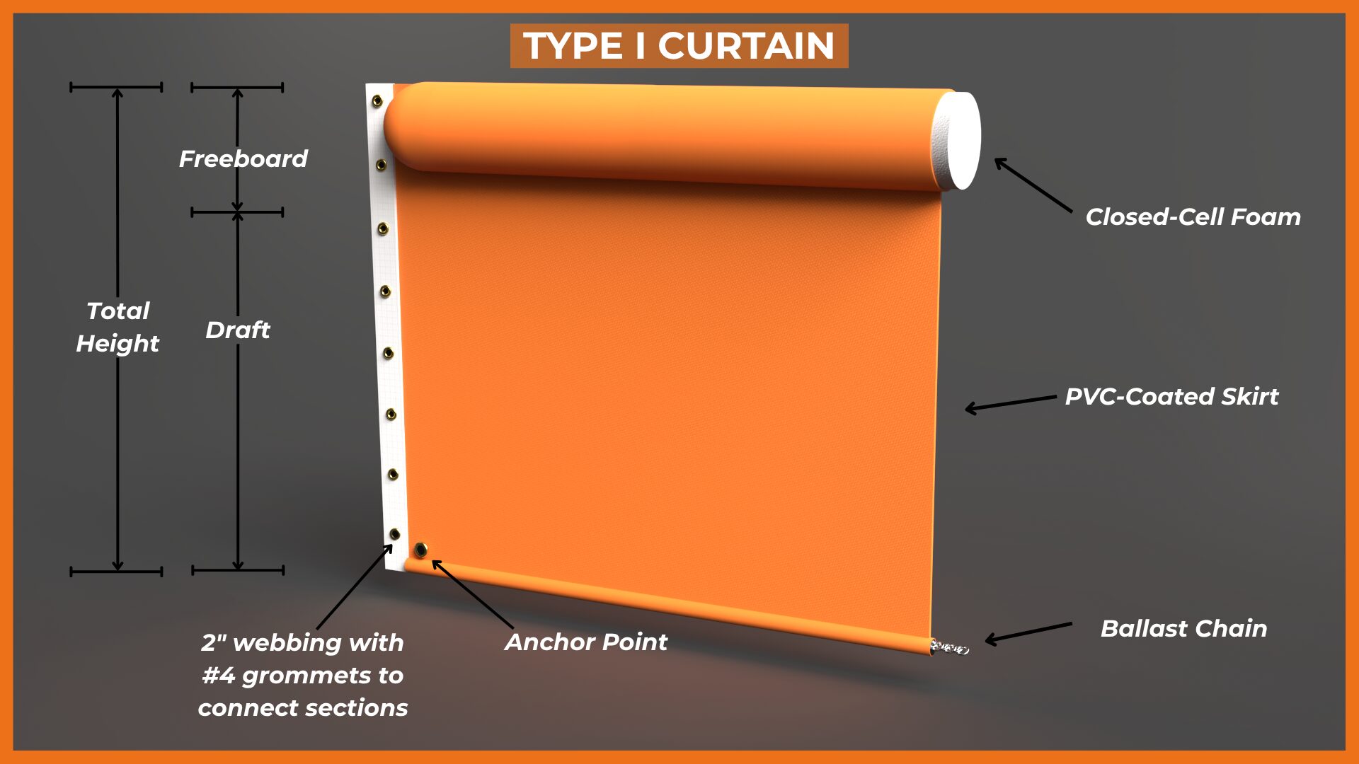 Silt/Turbidity Curtain Type I is the base model from which the others build on: